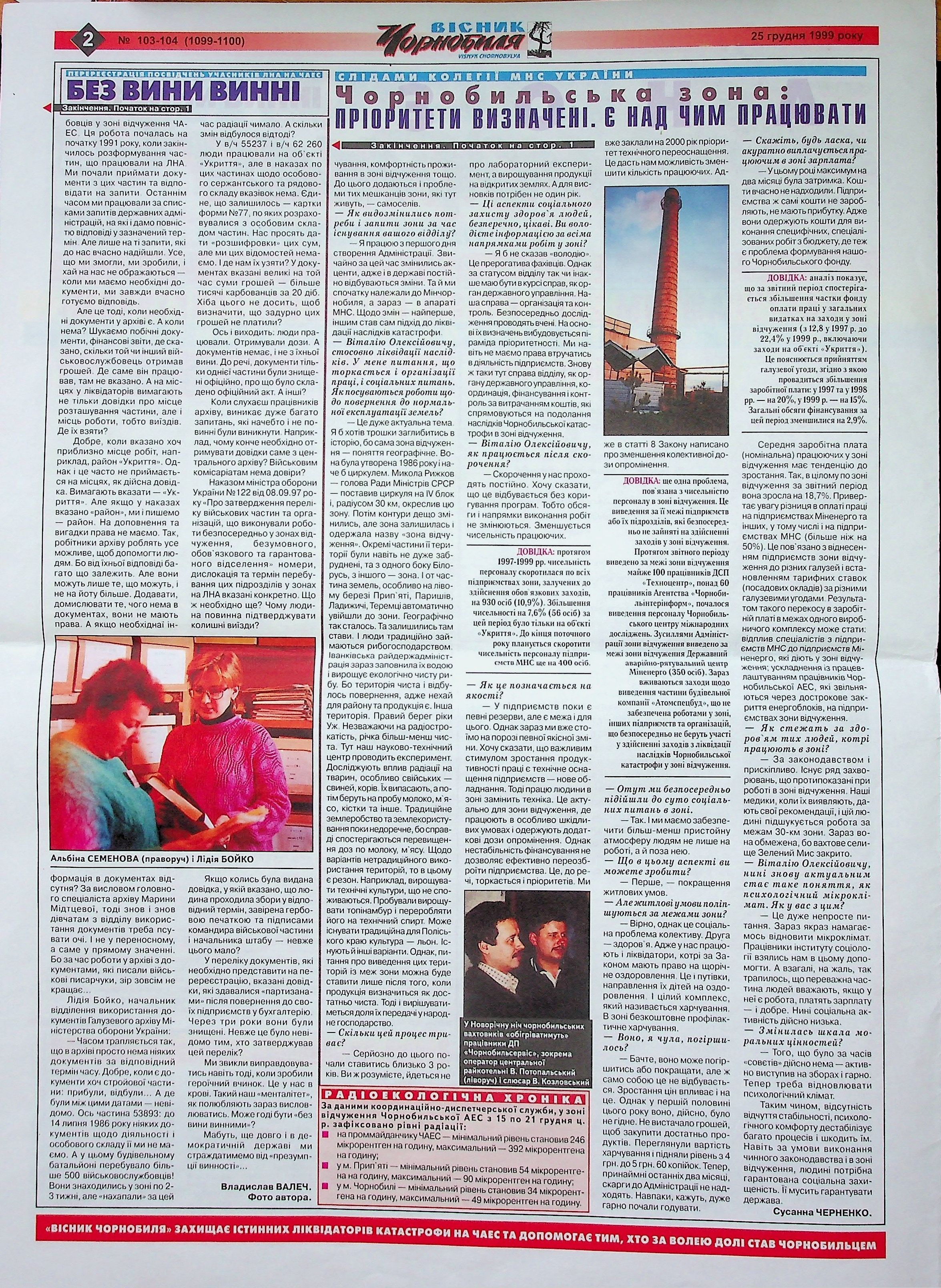 Вісник Чорнобиля. 1999. № 103-104. С. 1-2